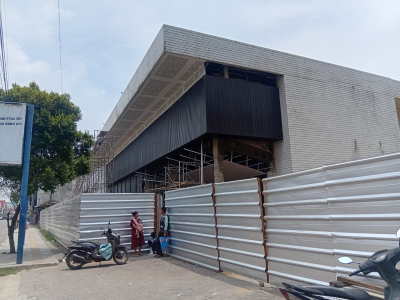 Bekas gedung bioskop Karawang Theater (KT) yang tengah direnovasi.