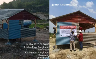 Spanduk tersebut sebelumnya dipasang oleh Cabang Dinas ESDM Wilayah 3 Purwakarta pada Jumat (13/3/2026) sebagai penanda sanksi administratif bagi perusahaan tersebut. Namun, pada Sabtu (14/3/2026), atribut pengawasan itu sudah tidak ditemukan lagi di lokasi.